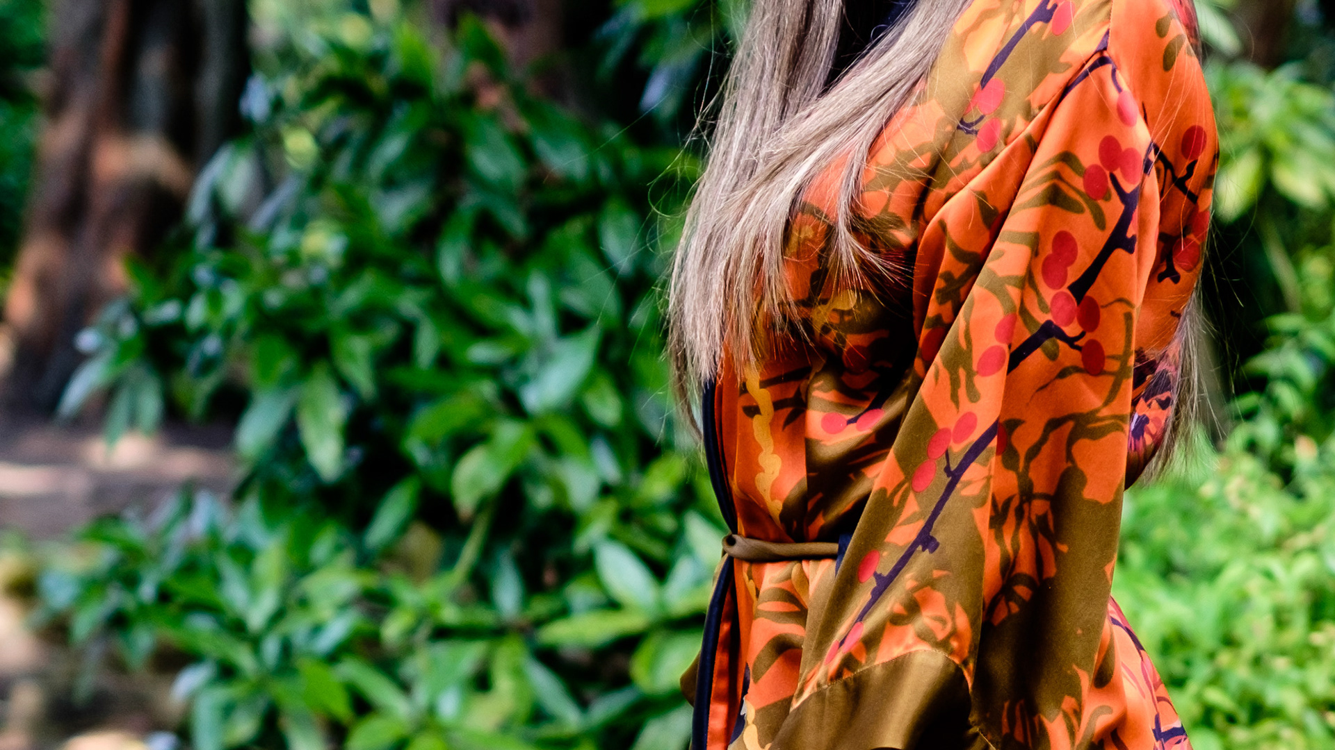 Kanzan aims to fuse simple Far Eastern garment lines with Western natural fabric motifs; based on the traditional Eastern understanding of the prioritisation of the beauty of the garment rather than the figure.